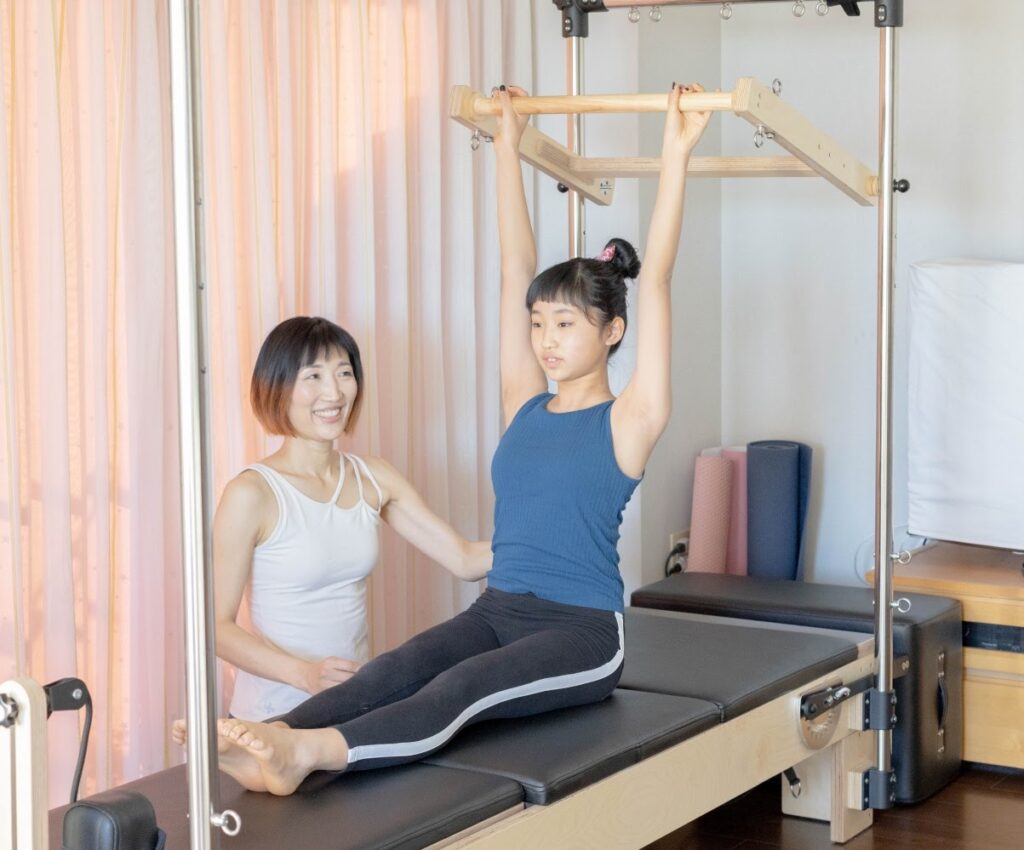ピラティスの動きを取り入れて、姿勢を改善する事にフォーカスしたトレーニングを提供しています。人が持つ機能的な骨格作りをするためのメソッドである、骨盤や関節の動きを学んで頂き、最初の10回で一定の結果が出るようにプログラムを組んでいます。